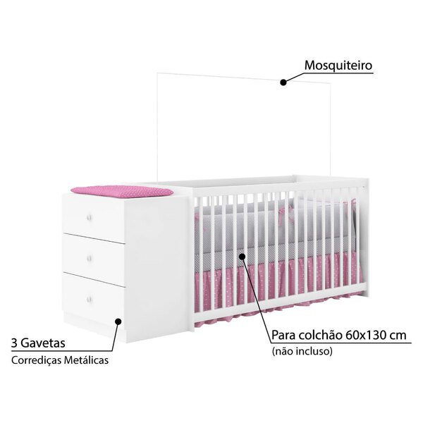 Berço Cômoda Gutti Branco Atóxico Móveis Estrela