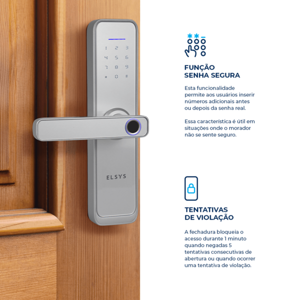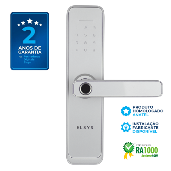 Fechadura Eletrônica Digital Elsys com Wi-Fi, Biometria, Senha e Chave ESF-DE4000B Prata Embutir para Porta de Giro
