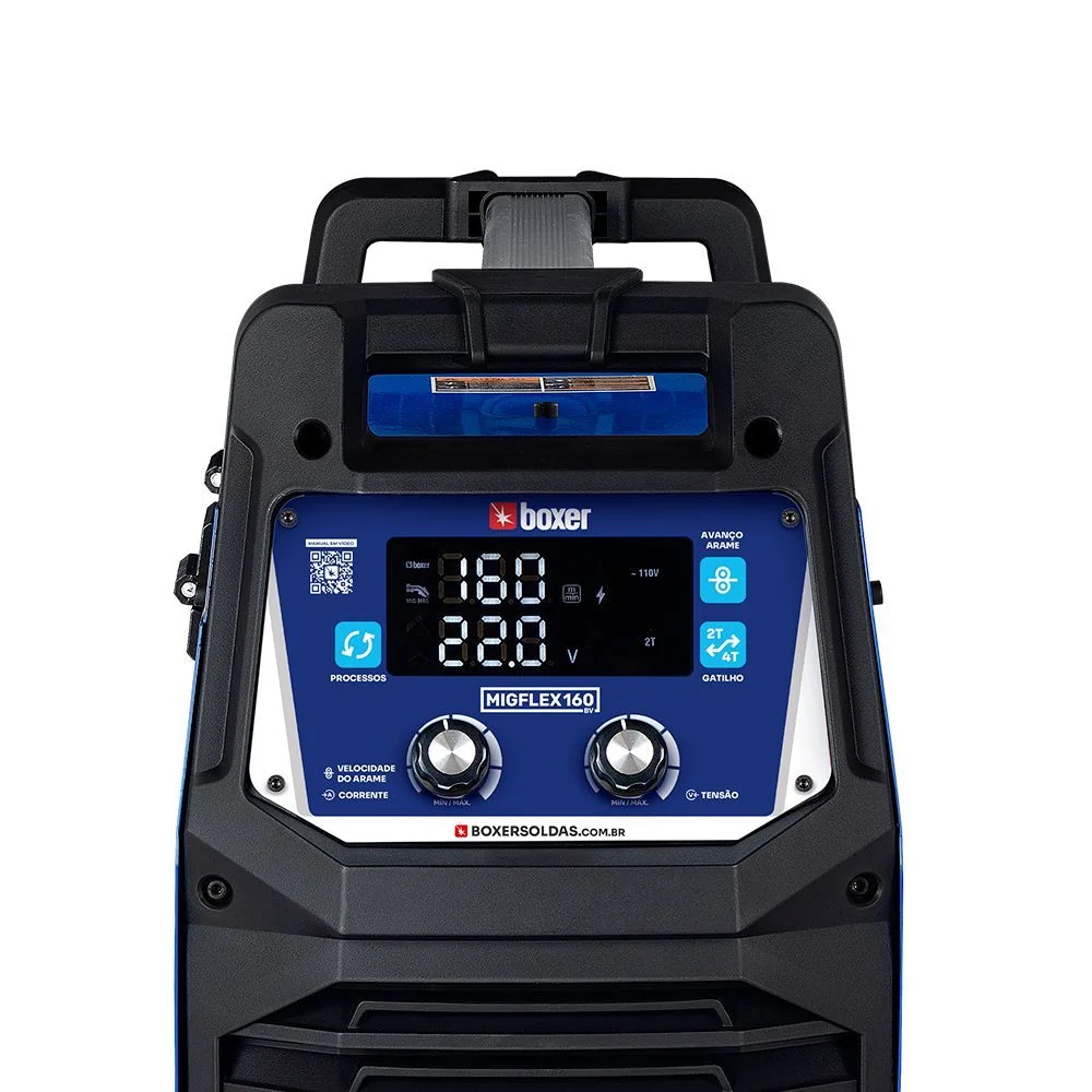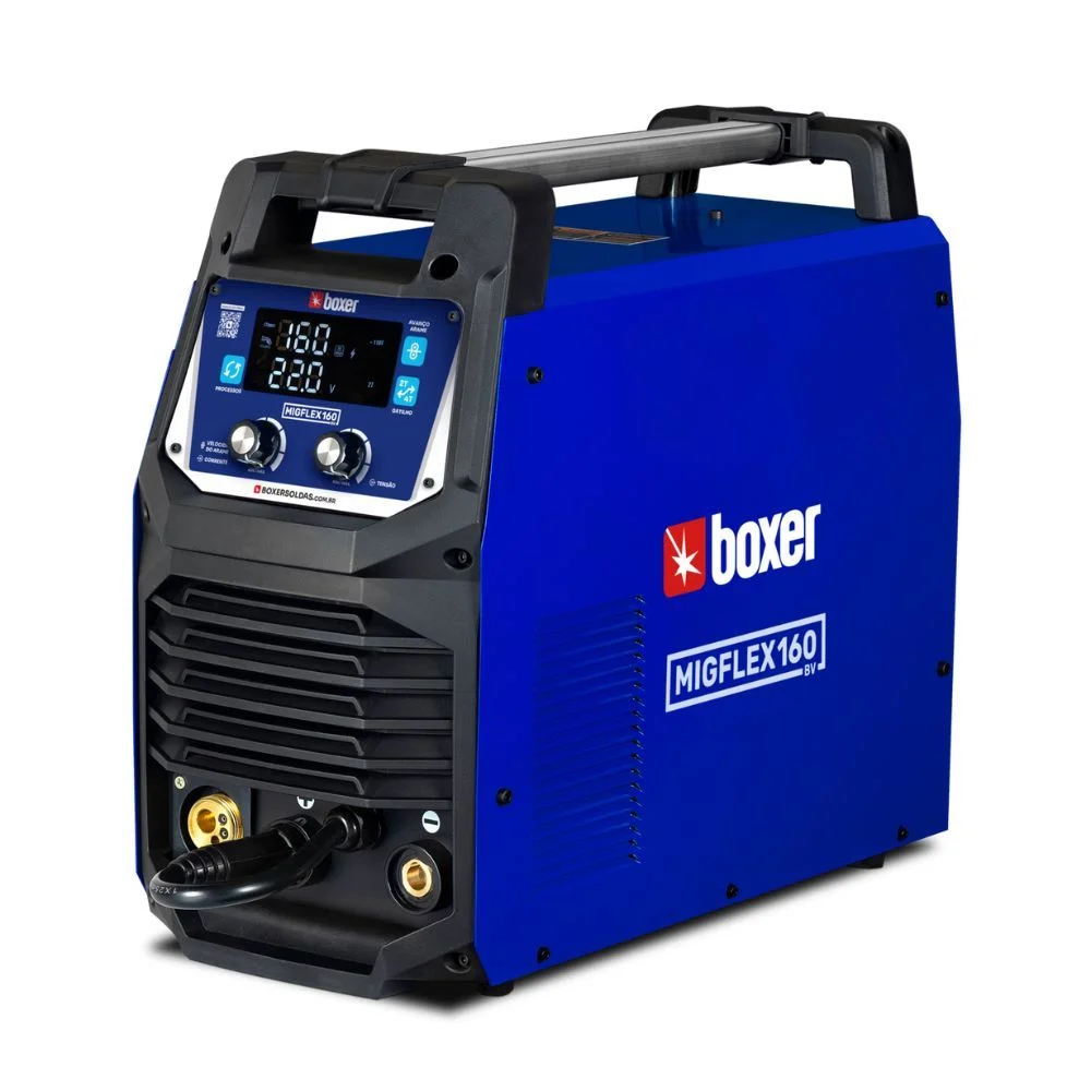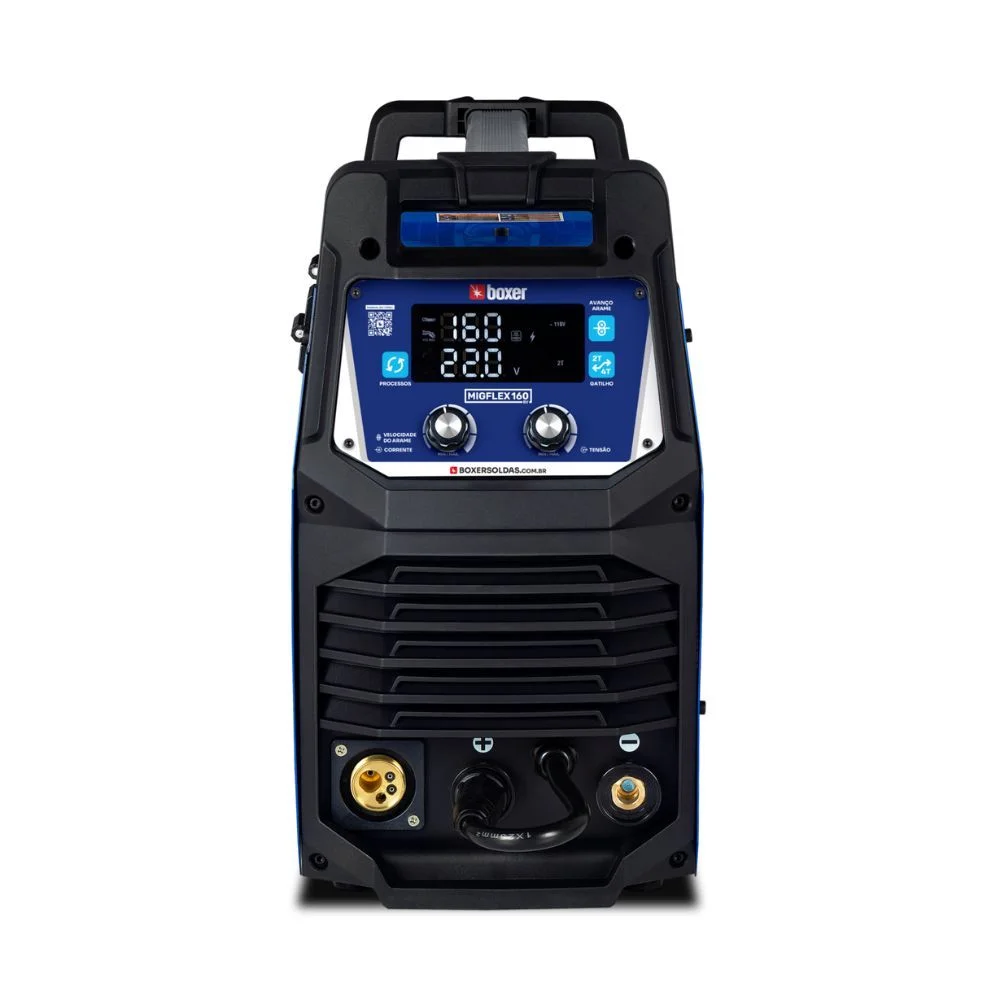 A MigFlex 160A é uma verdadeira central de soluções de solda, reunindo três processos em um único equipamento: Eletrodo Revestido (SMAW), MIG/MAG (GMAW) e TIG (GTAW). Seu sistema inversor reduz significativamente o consumo de energia, ao mesmo tempo que permite soldagens contínuas com até 100A, sem interrupções. Possui display LCD de fácil leitura para o ajuste fino dos parâmetros de solda e aceita rolos de arame de 1 a 5kg. Com design robusto, estrutura durável e múltiplas funções como Hot Start, Anti Stick e Arc Force, ela é ideal para trabalhar com diversos tipos de eletrodos e chapas.